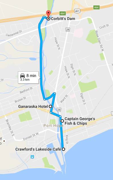 To find the fish ladder, follow these GPS co-ordinates: 43o58’10.7”N78o17’44.5”W