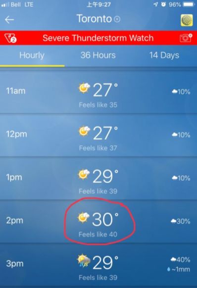 在这波恶劣的天气到来之前,多伦多的气温也提前崩溃,将在未来12小时内骤降30度!!!