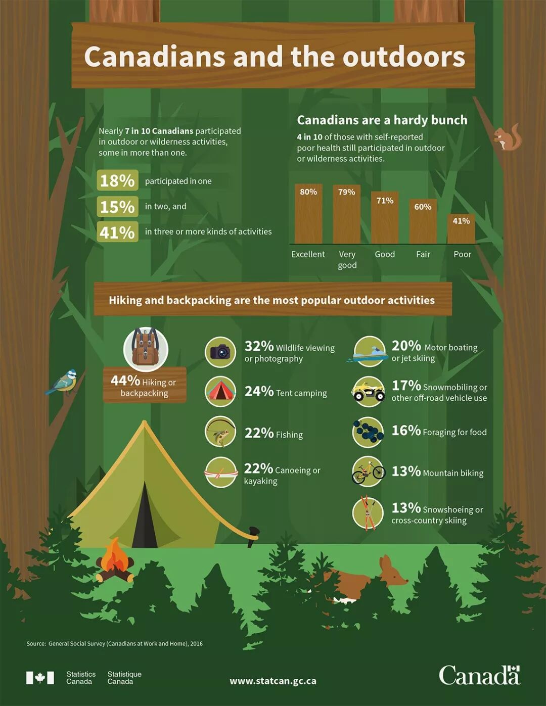 41%的加拿大有过至少3种户外活动。